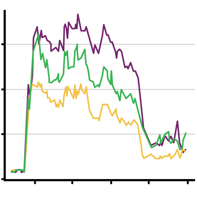 Die Lösung eignet sich nicht nur für Anschluss- und Hauptleitungen. Wir waren auch in der Lage, Leckagen bei Feuerhydranten zu erkennen. In der Abbildung unten wurde einer der undichten Feuerhydranten von mehreren Zählern in der näheren Umgebung beobachtet, daher das gleiche Muster bei den akustischen Werten. Die Leckage wurde repariert, und der Geräuschpegel fiel wieder auf ein normales Maß.