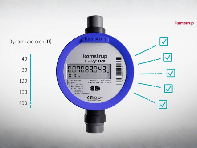 Bei Kamstrup liegt das Hauptaugenmerk während der Entwicklung und Produktion von Wasserzählern nicht auf dem dynamischen Bereich. Unsere Zähler besitzen nicht den größten dynamischen Bereich auf dem Markt, aber wir können eine äußerst hohe Genauigkeit wie folgt sicherstellen: Eine robuste Konstruktion und strikte Komponententoleranz, datenbasierte Kalibrierung und Anpassung sowie kontinuierliche Tests der Zählercharge mit drei Durchflussmengen.