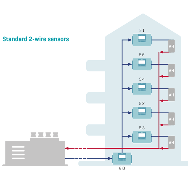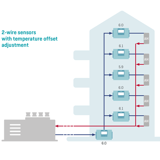 Figure 3: A typical scenario when using standard 2-wire temperature sensors for measurement of inlet temperatures.