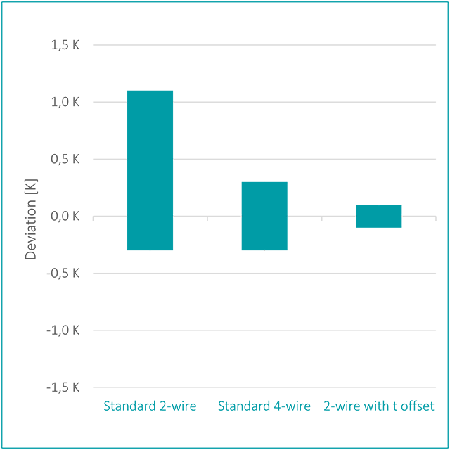 Sometimes it is decided to use only 4-wire sensors to improve accuracy of the temperature measurements. This also eliminates the increase in temperature caused by the cable length but does not remove the accuracy of the sensor element of ± 0.3 K. And 4-wire sensors are both more expensive to buy and to install.