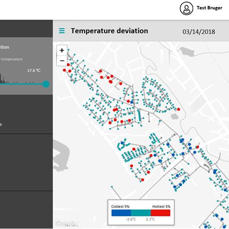 Finally, because the tool analyses measurements from all end points in the distribution network based on specific knowledge about its pipes, utilities can create virtual meters that can calculate temperature and flow anywhere in their network – even where there is no heat meter installed. This provides full transparency down to individual pipe sections.