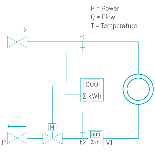 The regulator module is called a PQT controller module and is designed to optimise the energy consumption by regulating the waterflow in the network via a motorised valve based on set points for either power, flow or temperature. Depending on the installation, it is possible to ensure that the available energy is fairly distributed among the end users connected to the cooling network, or to secure the required temperature is kept stable, regardless of the actual load.