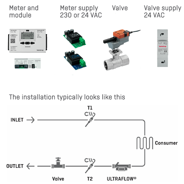 One possible solution is to take advantage of the Kamstrup smart meter already installed in the network, simply by adding a regulator module and a valve.