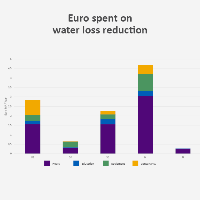Aside from being seen as important, NRW is also something that the utilities spend both time and money on in the efforts to reach the lowest economically feasible levels. The participating utilities report spending between €0.3 and €4.6 per metering point every year in time spent locating leaks, education, external consultants and equipment.
