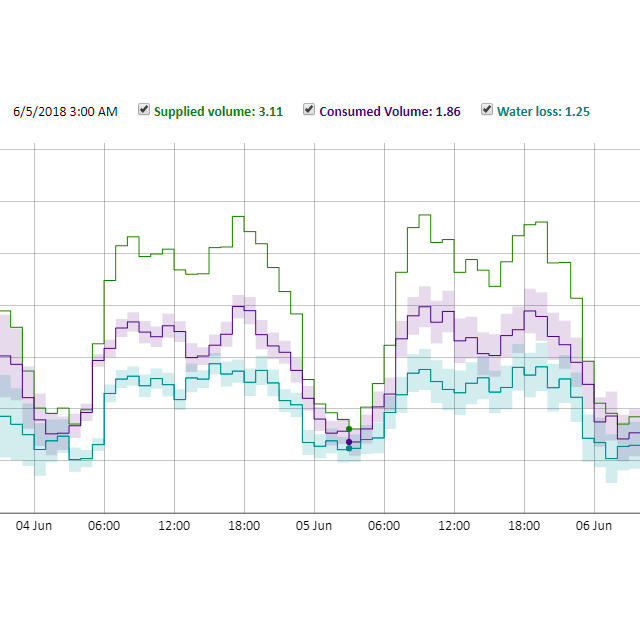 Kamstrups analytical software continuously compare district meters and household meters and provide a reliable picture of water-loss trends day by day, week by week and month by month.