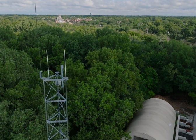 The study proved accurate. One collector mounted on a new 100-foot pole at the Public Works yard provided full coverage, despite the dense foliage that defines the “Village in the Forest.”