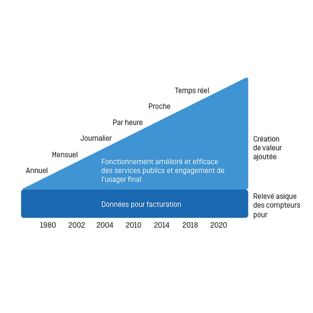 Les données des compteurs apportent la connaissance. Sans information détaillée sur l'état réel du réseau et sur le flux énergétique du système, les services publics de distribution de chauffage ne peuvent pas savoir quelles modifications doivent être apportées ou comment évaluer les effets de ces modifications. En bref, il est impossible d'optimiser ce qui n'est pas mesuré. Et parce que la fréquence des données augmente, vos possibilités d´optimisation et de création de valeur ajoutée augmentent aussi.