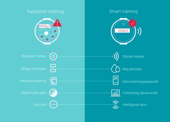 Under lång tid har mekaniska mätare varit det självklara valet. Men med digitaliseringen följer ett ökande behov av kommunikation och anslutbarhet. Smarta ultraljudsmätare har inga rörliga delar, till skillnad från deras mekaniska motsvarigheter. Detta gör dem mer hållbara och säkerställer en stabil och hög precision genom hela sin livslängd. Ultraljudsmätarna tillhandahåller en tydlig bild över data i distributionsnätet, samt noggrann fakturering. Till skillnad från mekaniska mätare, har ultraljudsmätarna även fjärravläsningskapacitet utan några tilläggstjänster.